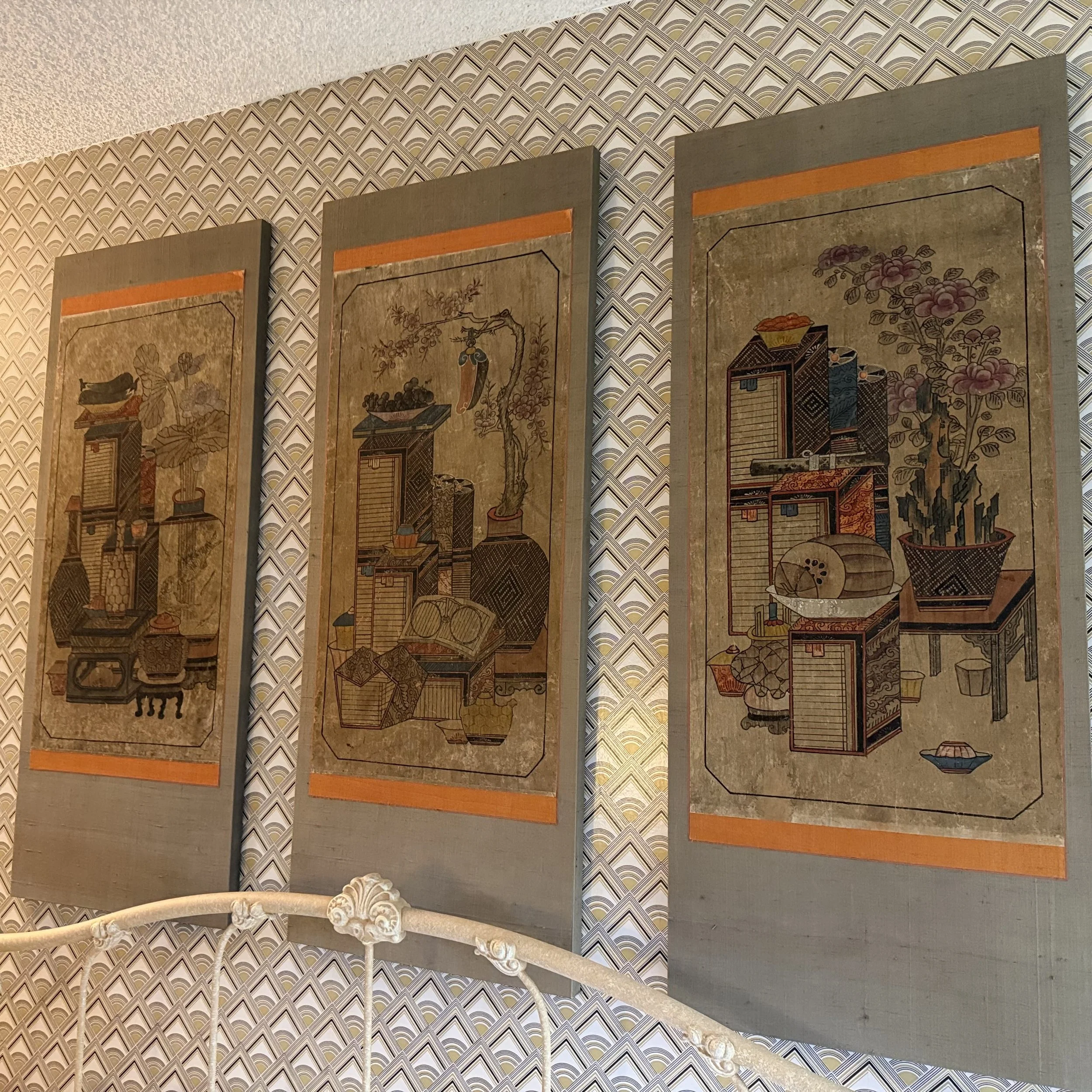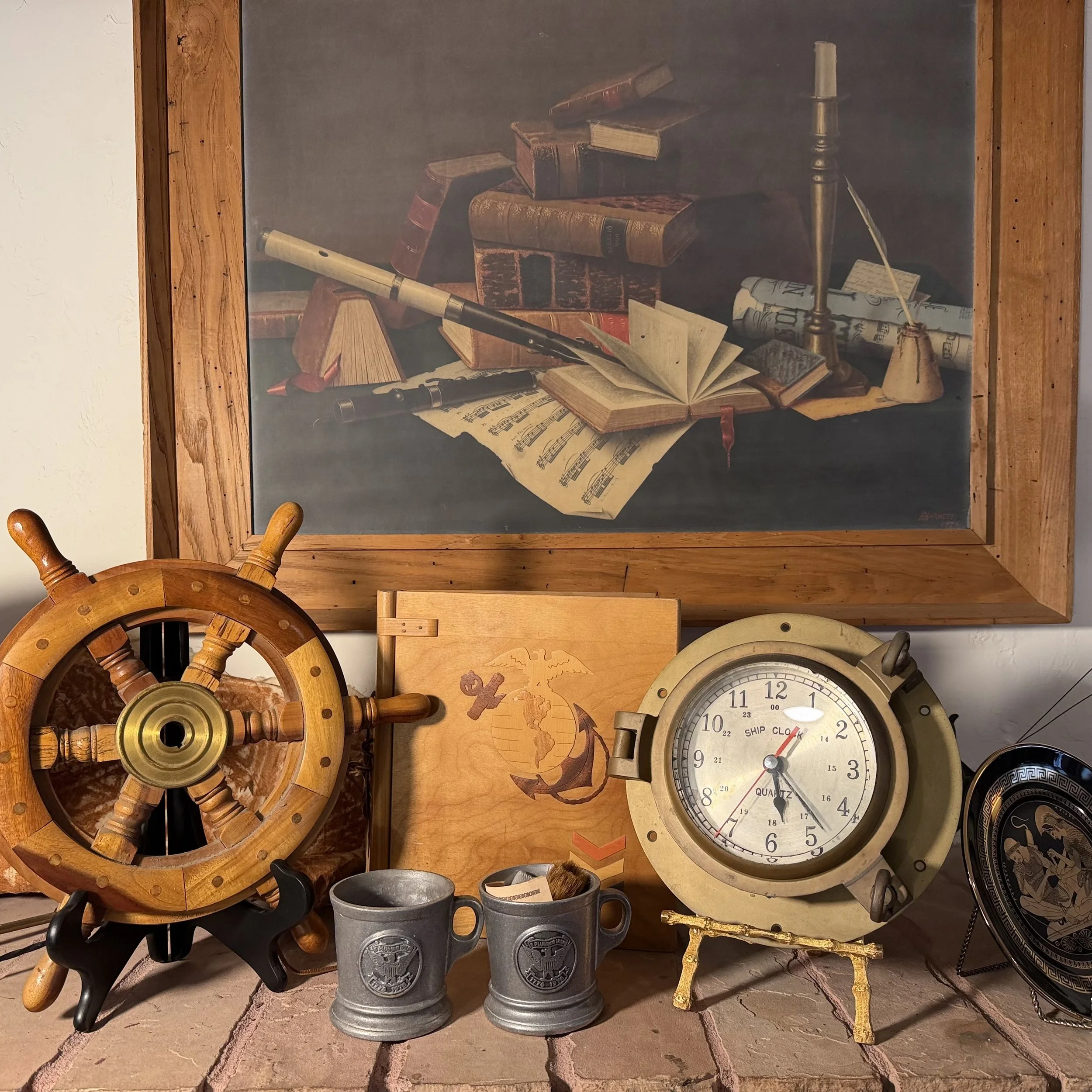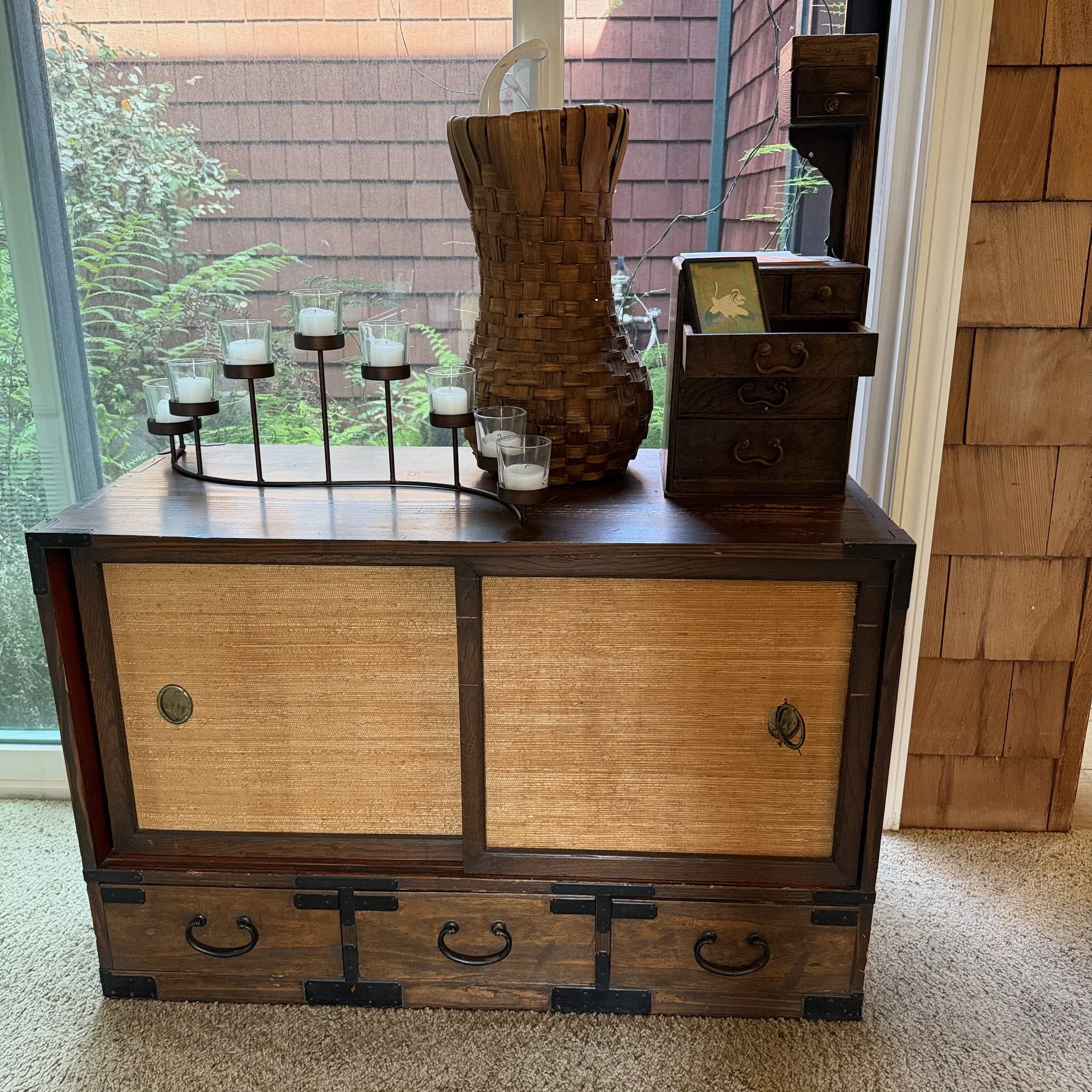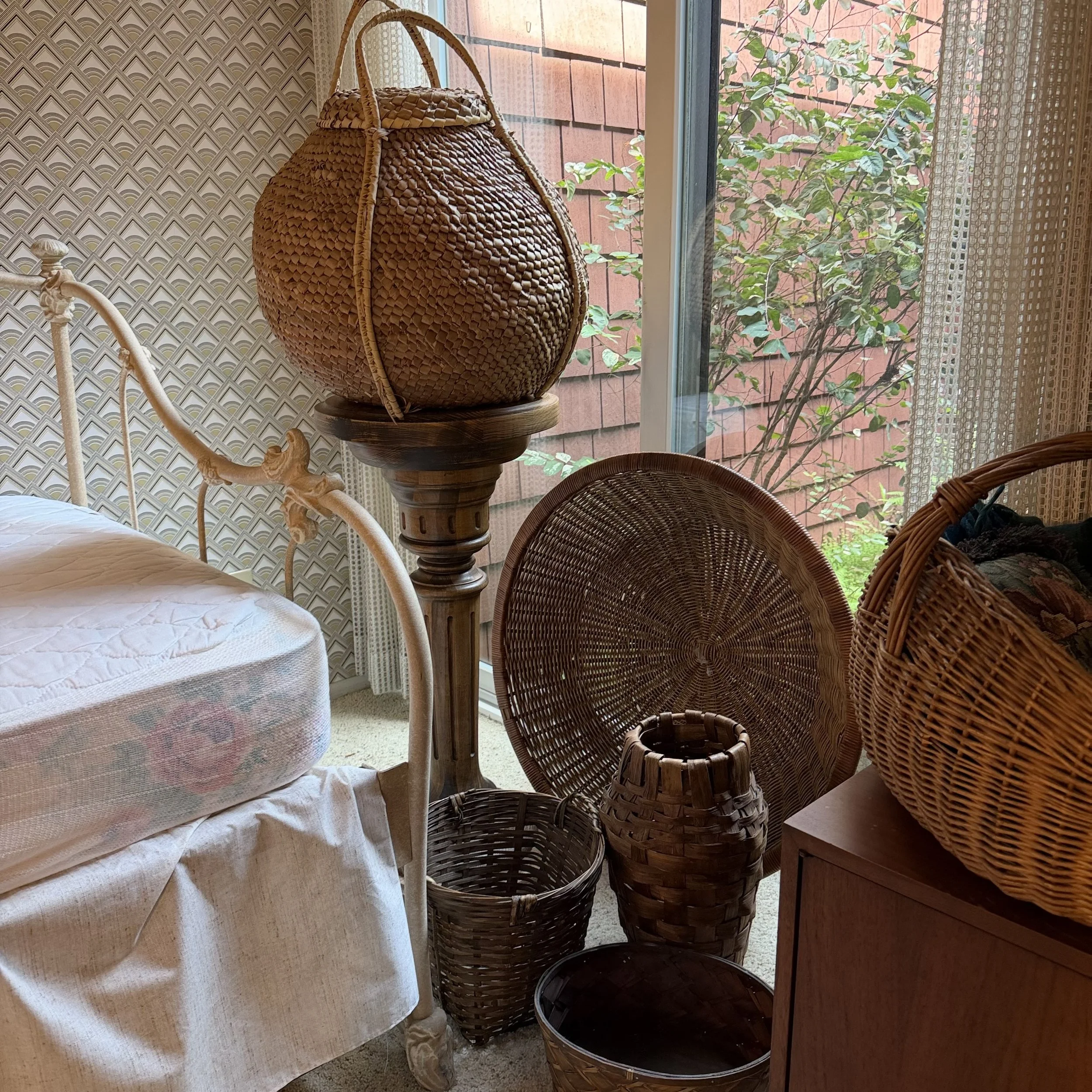 It has a collection of musical instruments, sunglasses, Beatrix Potter children’s tea set, handmade boxes, fossils, statuary, figurines, art glass (Bono, Dynasty), foo dogs, table lamp singed by Sander Mulder, side tables, periodical holders, coffee tables, dish sets (Haviland, Mikasa, International table works, Chuan Kuo, American Atelier) dishes from Japan, China and Taiwanese tea sets, Royal Danube Tea set, Rob Ryan plates, Michael Abram cheese board and accessory (signed), Wallace flatware, pot holder, barware, stem ware, entertaining accessories, Reserve Bartop bottle opener, cookbooks, ramekins, silverplate, small drawer caddies, wall shelves, Kino Guérin side tables, occasional chairs, framed art (oils, mixed media, prints, lithos, watercolor, photos), two large antique scrolls, carved jade and rosewood pendant, fused glass dishes and artwork, throw pillows and blankets, vintage IKEA porcelain lamp, cd’s, dvd’s, side tables, gift boxes, designer boxes, Design Within Reach cherry wood wave book shelf, wicker chairs and stool, bar stools, solid wood dining table with 8 chairs and sideboard (copy of Hearst Castle table), linens (Sur la table, Crate and Barrel, William Sonoma), child’s teak bench, floor lamps, wall clocks, framed rosewood watercolor and poem, K Shoa paintings, electronics (iPads, Kindle, Sky Lite, Dell, Dadow, cameras, heaters, air purifiers, computers, accessories), silk ties, jewelry and trinket boxes, office desk and chairs, printer stand, Gumps bathroom set, sea shells, washer/dryer set, solid wood children’s castle bunk bed, graphic novels, boys hats, baby clothes and blankets, twin sheet sets, Cal-King sheet sets, as well as animated music boxes.